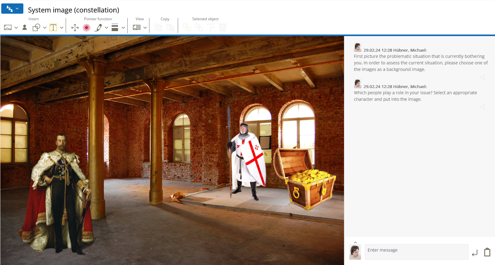 Keywords: System image, constellation, systemic work, figures, dynamics, coaching tool, visualizationThe System Image is a flexible visualization tool for representing relationships, roles, and dynamics within a social or organizational system. It is based on the method of systemic constellations and is ideally suited for mapping both current (as-is) situations and desired (target) states.