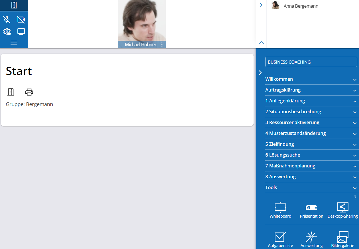 - Live View: As soon as you activate your camera, your portrait turns into a live image. The same applies to other participants: as soon as they activate their cameras, they are also displayed with their live feed.
